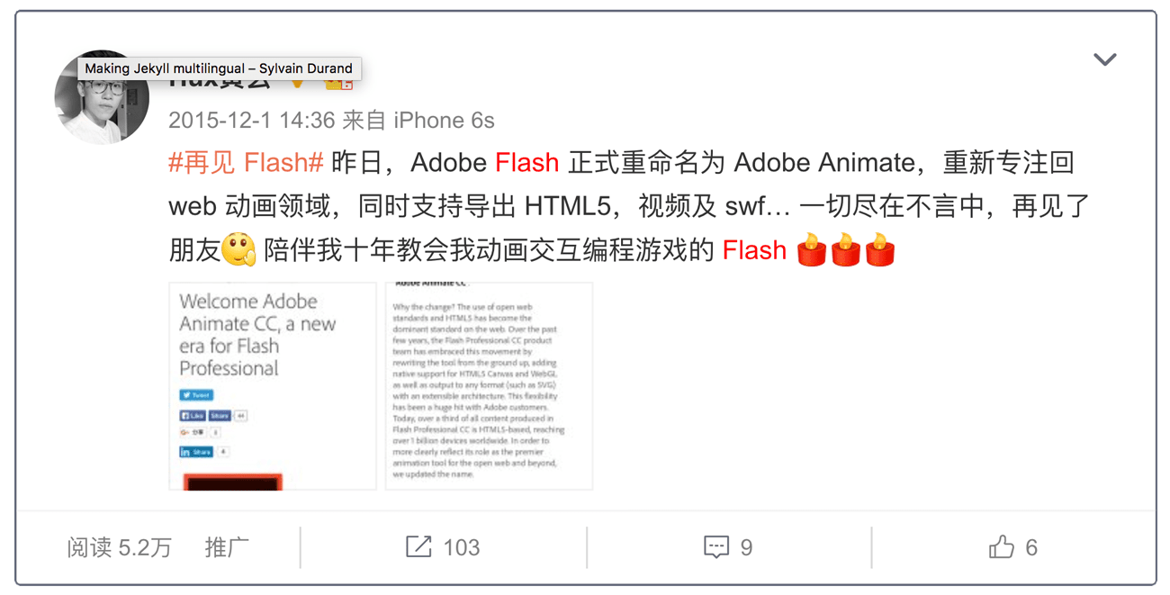 一年半前,我曾和 Flash 作过一次告别。那一次,Adobe Flash Professional CC 被重新命名为了 Adobe Animate CC,宣告着 Flash 作为一个创作工具走到了尽头。
